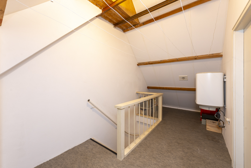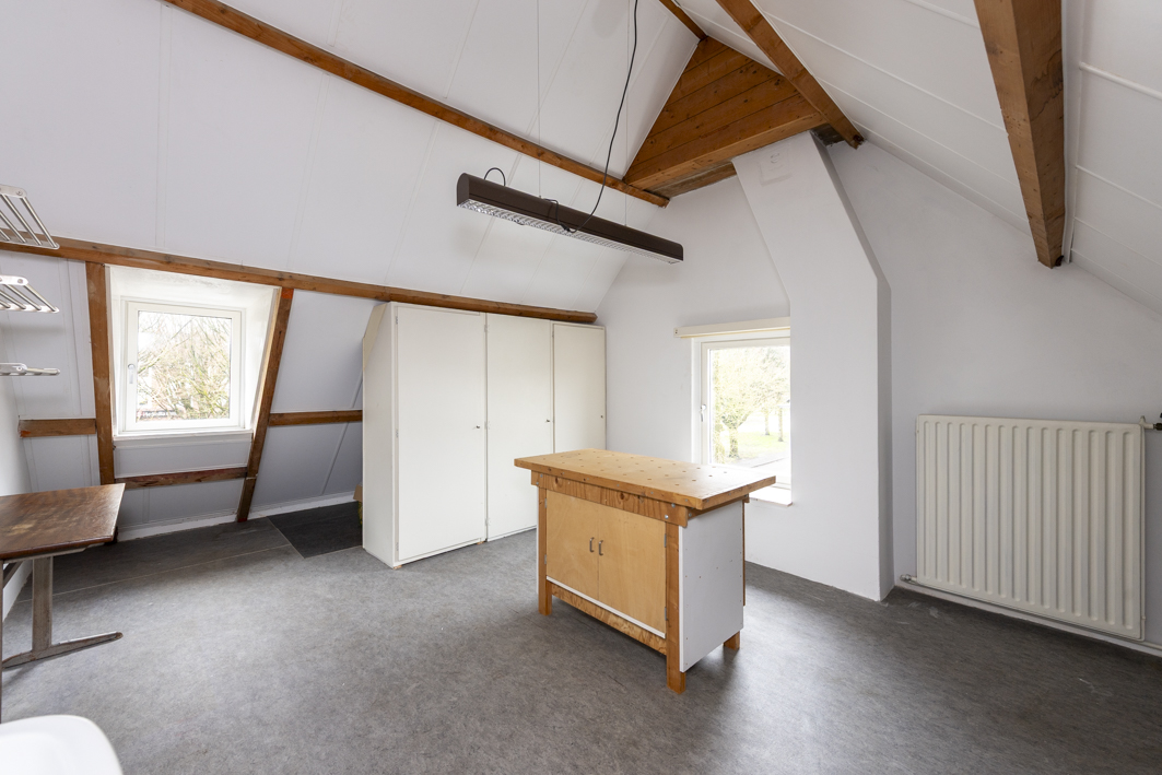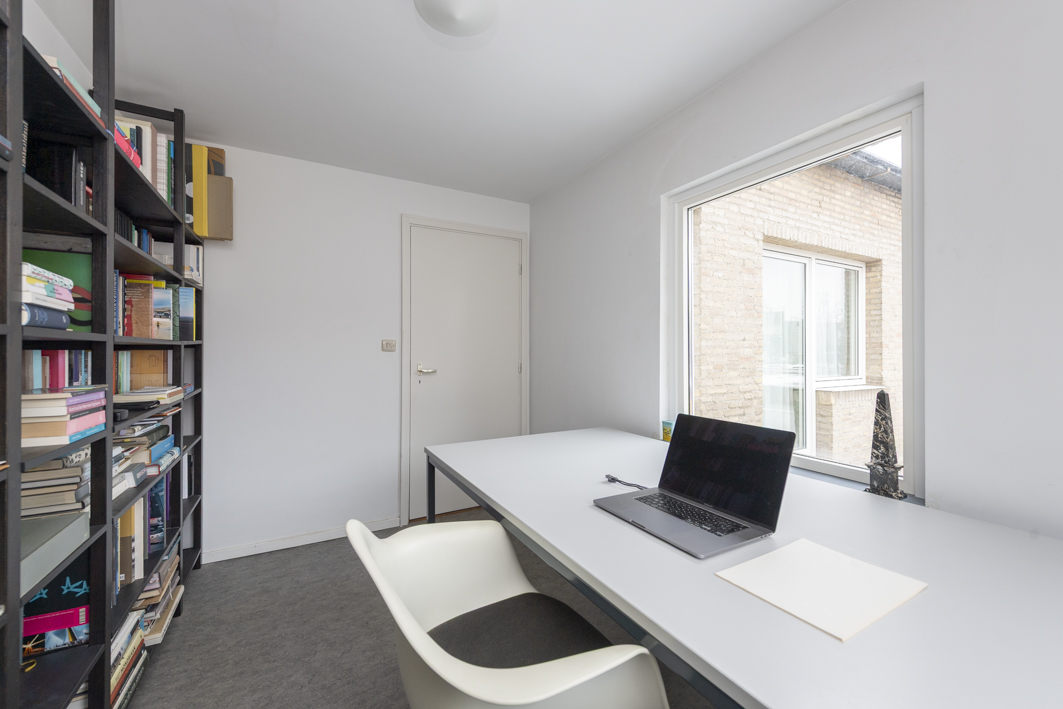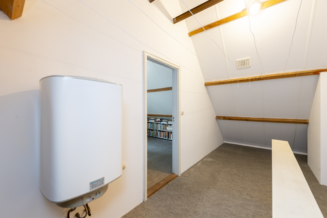 Via een vaste trap bereikt u de tweede verdieping met een royale overloop/voorzolder, waar zich de boileropstelling bevindt. Vanaf hier is er toegang tot een zeer ruime vierde slaap- of werkkamer (circa 16 m²), voorzien van een wastafel met planchet, een dakkapel met uitzicht op het plein en een vast raam in de topgevel. Het zadeldak is geïsoleerd met Kingspan isolatieplaten, wat zorgt voor extra comfort.