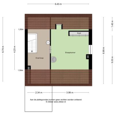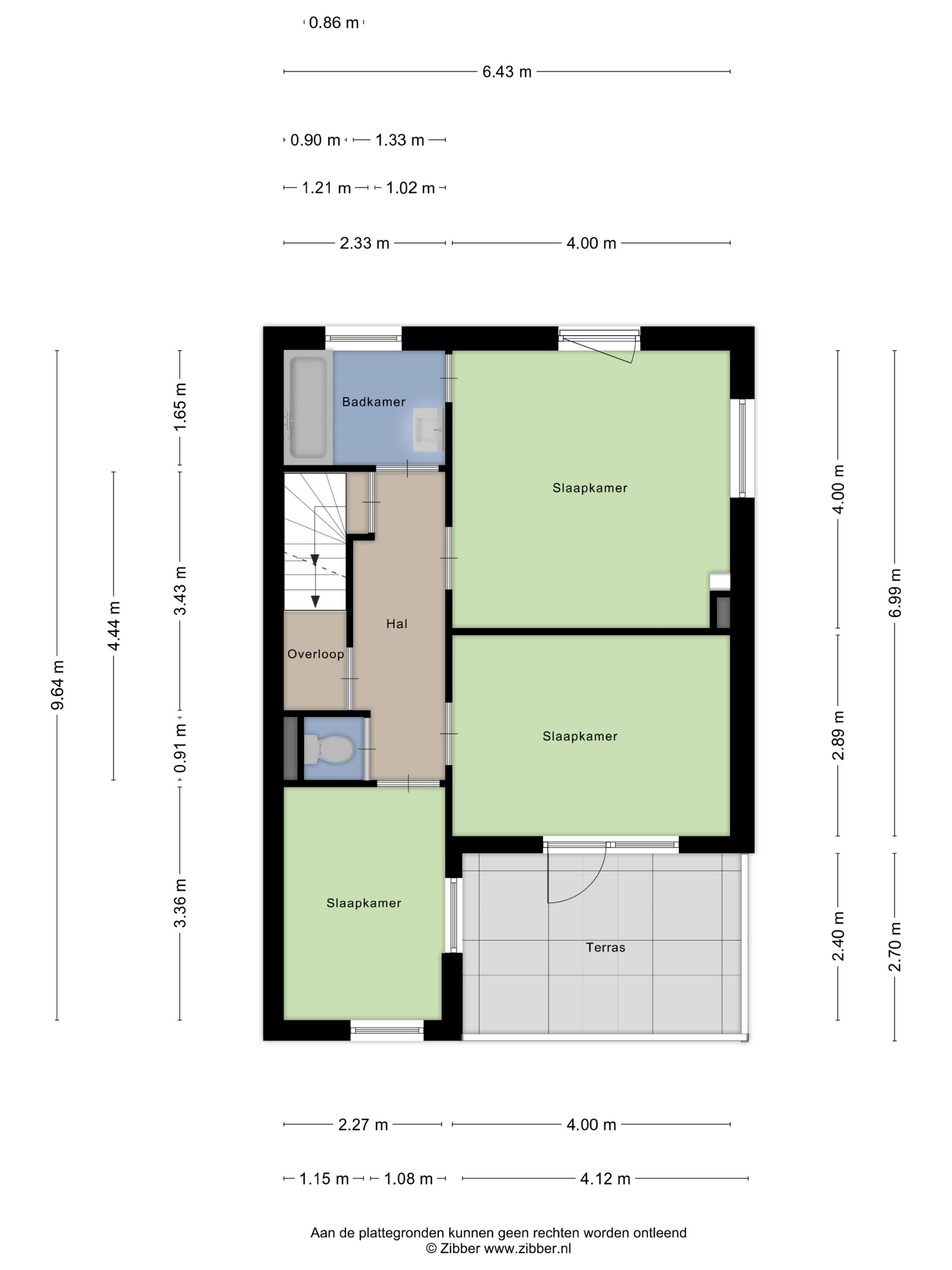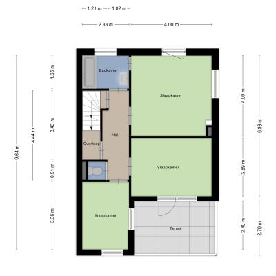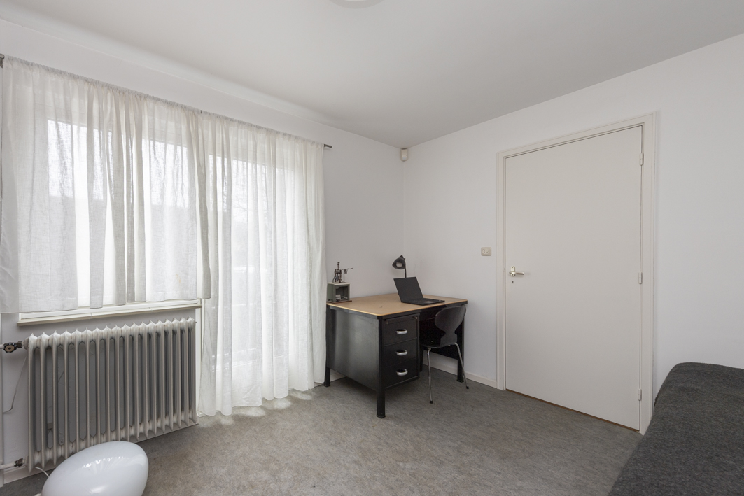 De tweede (circa 12 m²) en derde slaapkamer (circa 8 m²) bevinden zich aan de achterzijde van de woning. Via de tweede slaapkamer is een dakterras bereikbaar.
