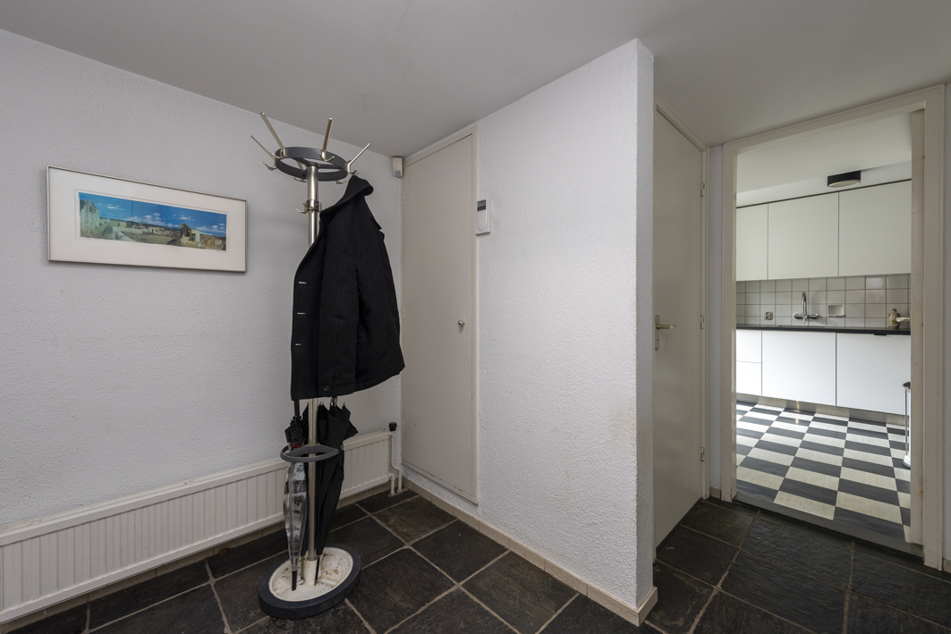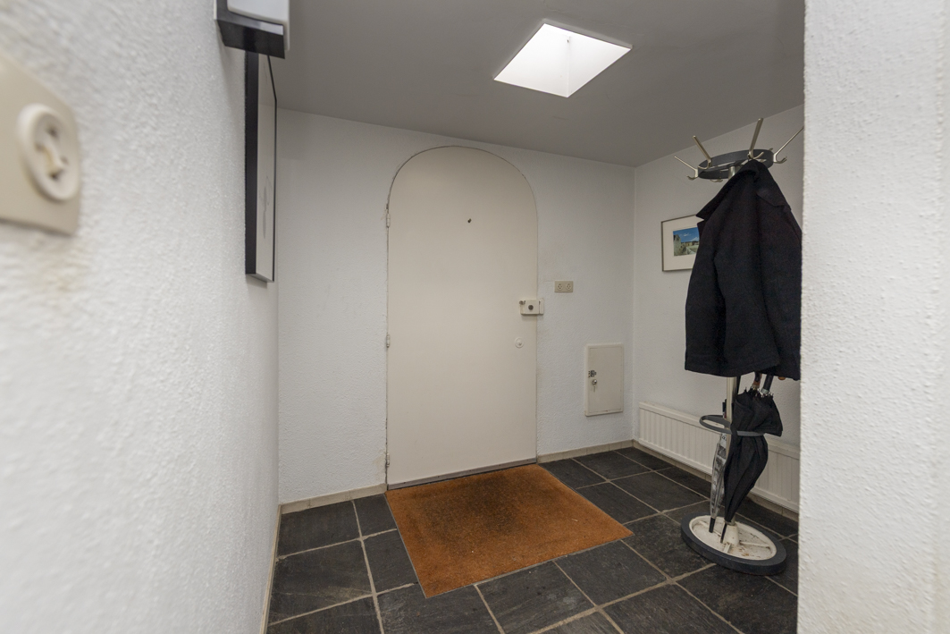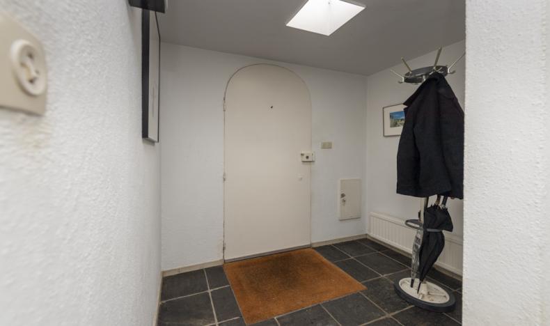 Via de hal met leisteen vloer bereikt u het toilet met fontein, de meterkast, woonkamer en keuken.