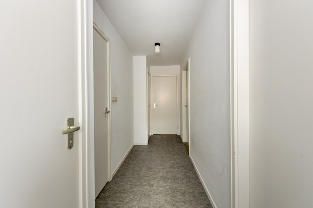 De overloop biedt toegang tot drie slaapkamers, het separaat toilet en de badkamer.