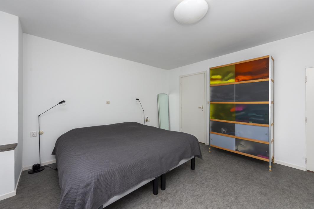 De ruime hoofdslaapkamer (circa 16 m²) bevindt zich aan de voorzijde van de woning en is zowel via de overloop als via de badkamer bereikbaar. De hoofdslaapkamer heeft een Frans balkon met uitzicht op het plein.